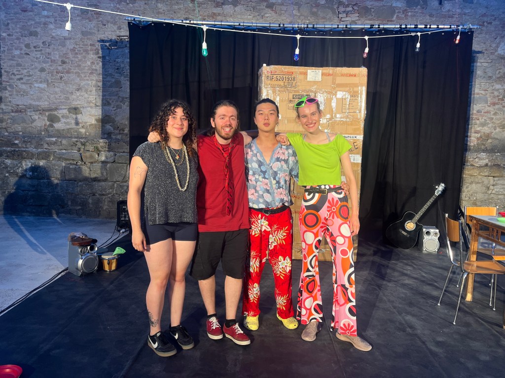 The cast (pictured), director, & I created a modern adaptation of The Party. With the help of Micro Teatro Terra Marique, we performed in Perugia, Italy and toured in the streets of surrounding villages.